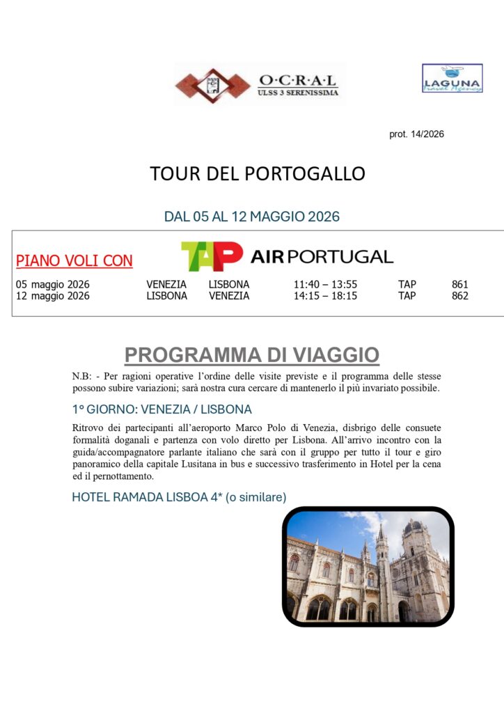TOUR DEL PORTOGALLO DAL 05 AL 12 MAGGIO 2026